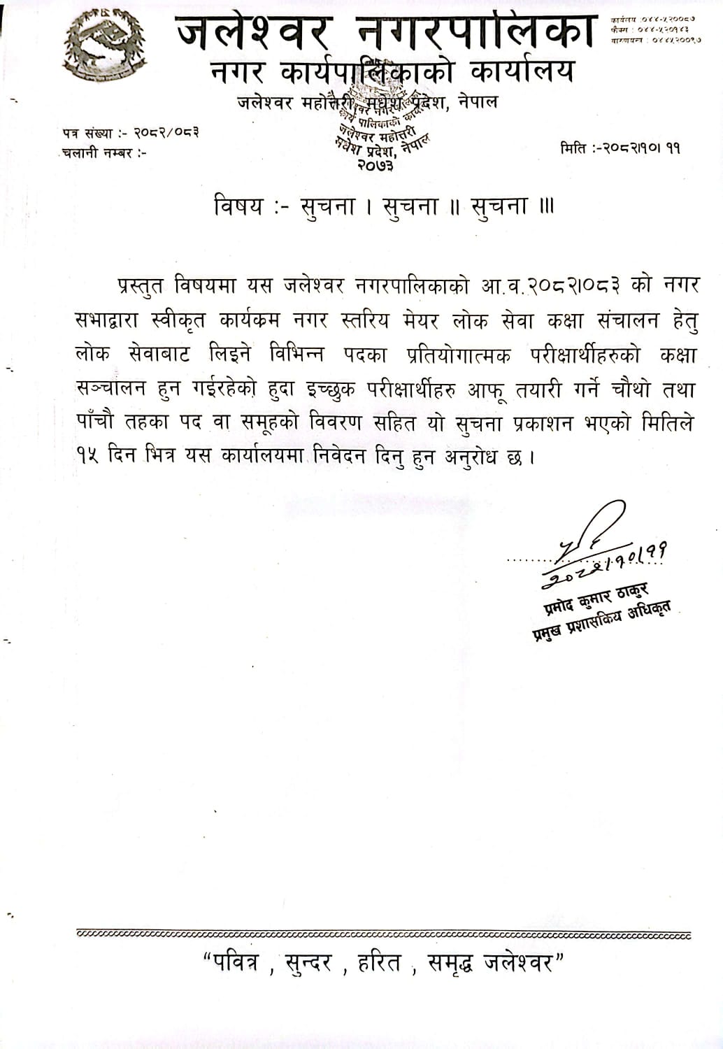 सार्वजनिक पोखरी ठिक्क सम्बन्धी सूचना