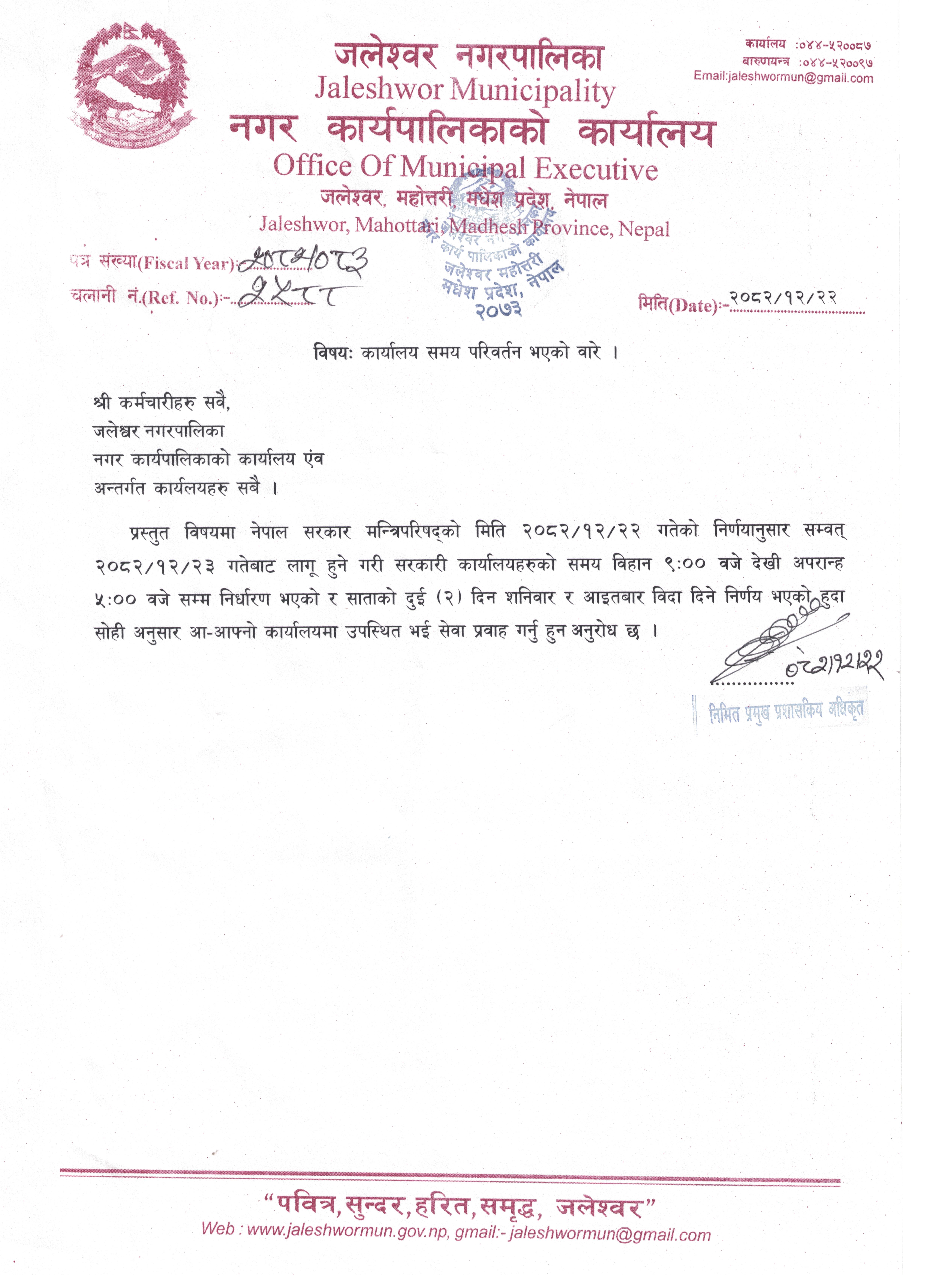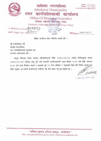 कार्यालय समय परिवर्तन भएको वारे