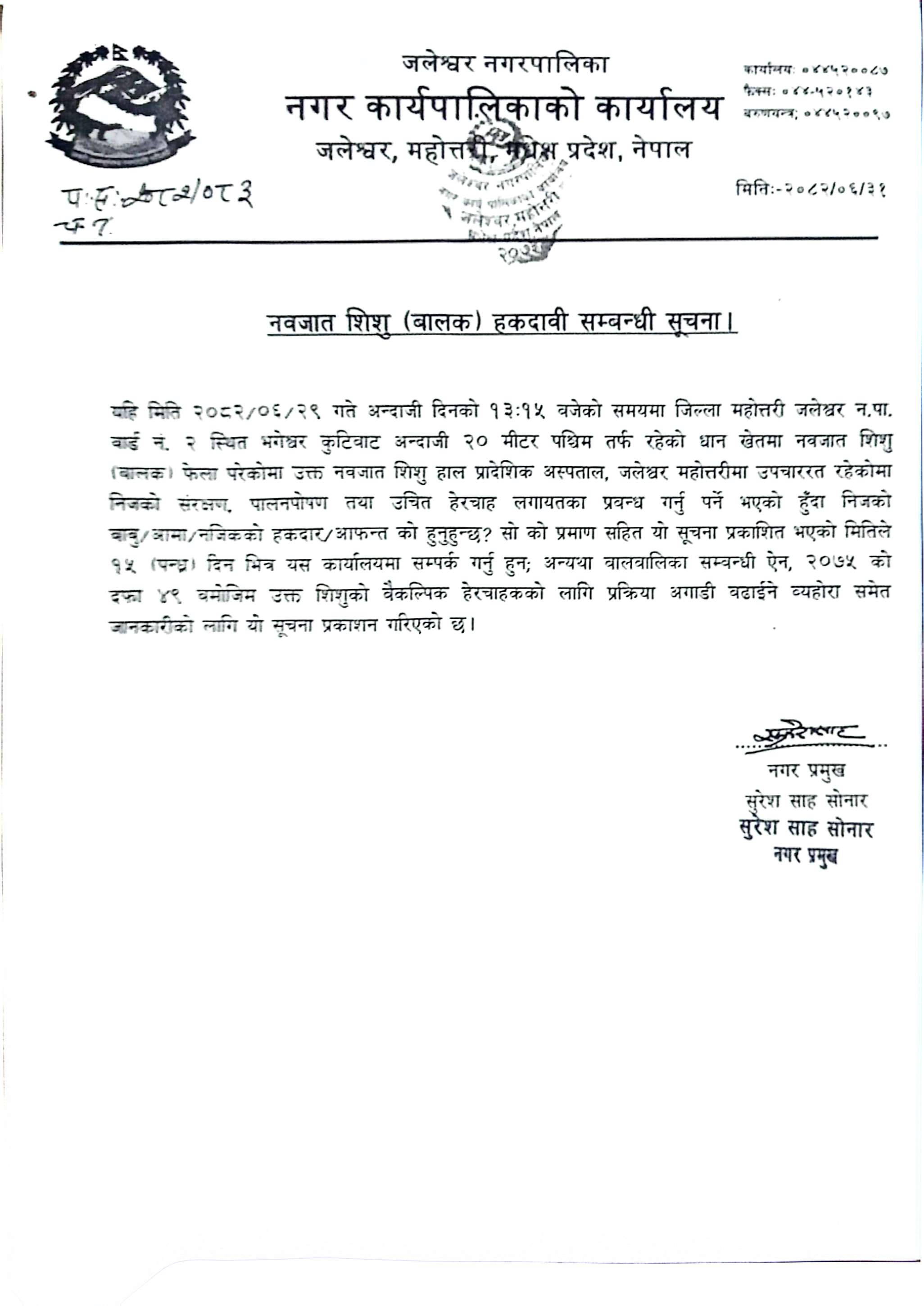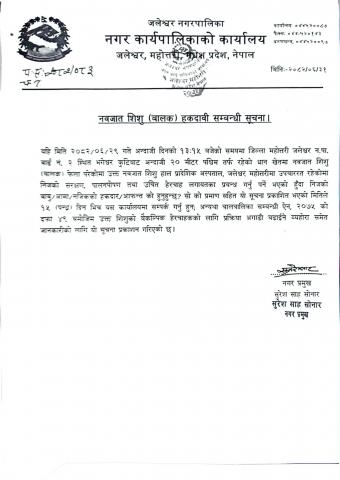» नवजात शिशु (बालक) हकदावी सम्बन्धी सुचना ।