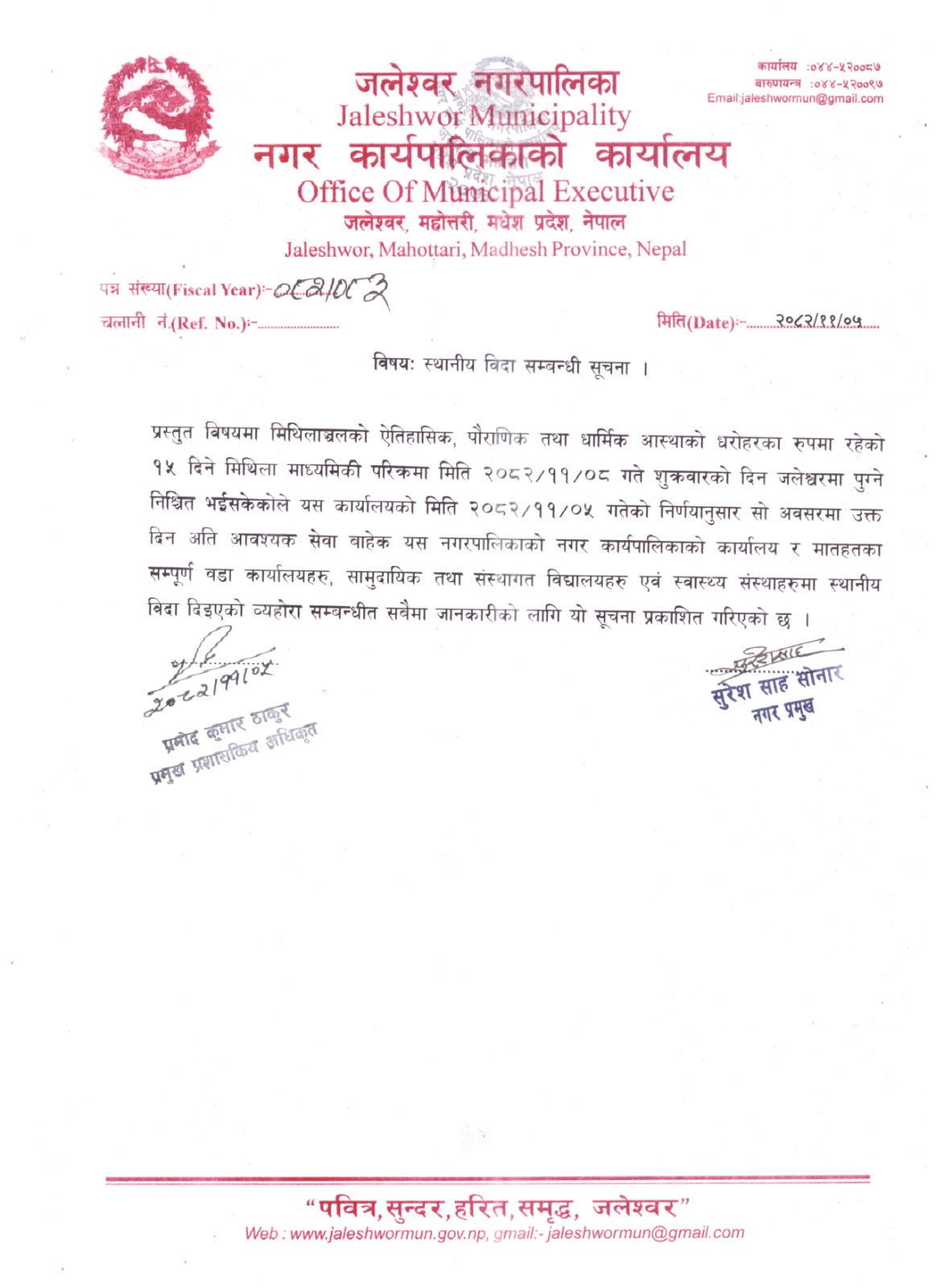 जलेश्वर नगरपालिकाको आ. व. २०७९ /०८० को बजेट अनुमान